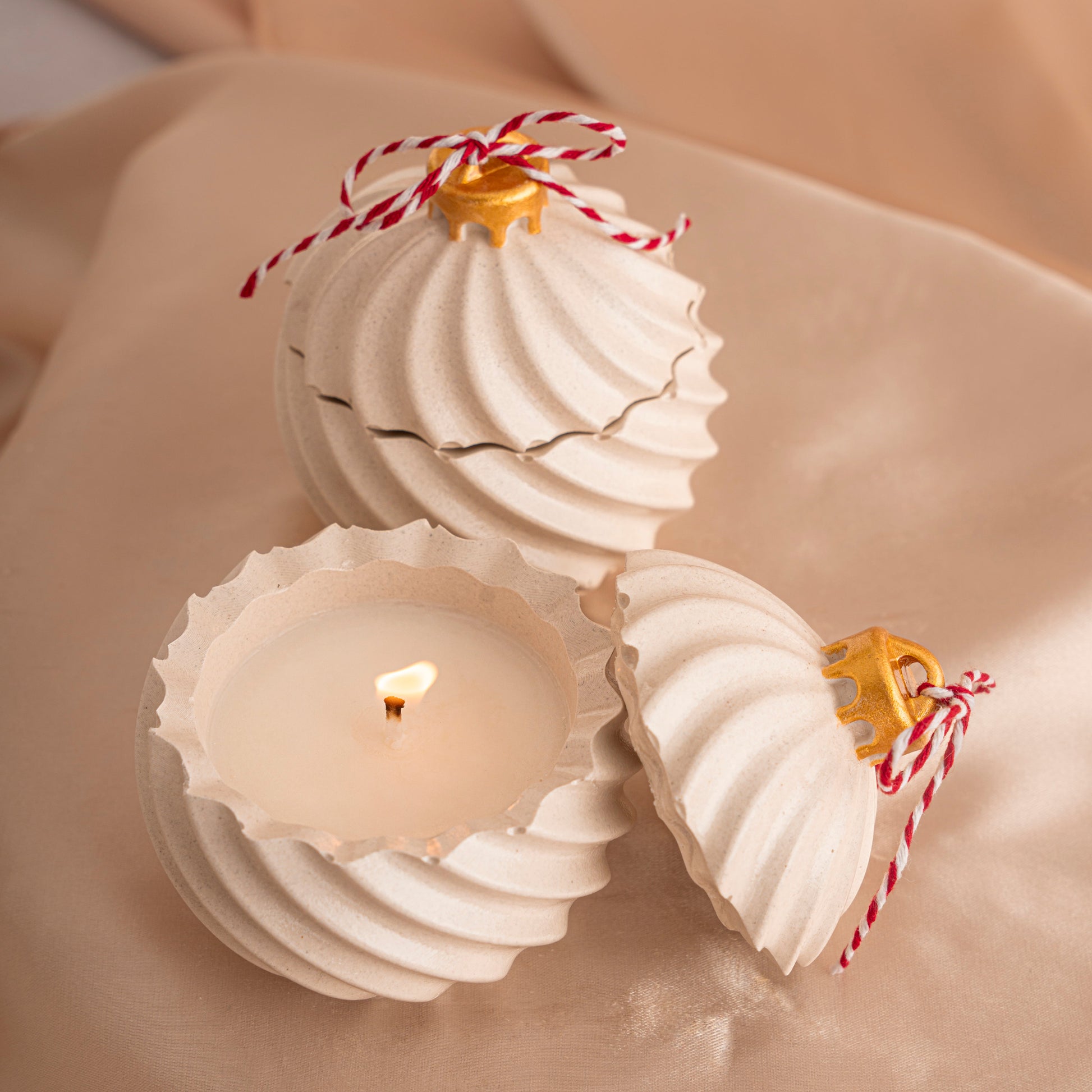 Nuestra vela en recipiente con forma de bola de navidad se convierte en el regalo ideal en estas festividades y por su caracteristica forma es ideal para darte el toque navideño a tus espacios.
