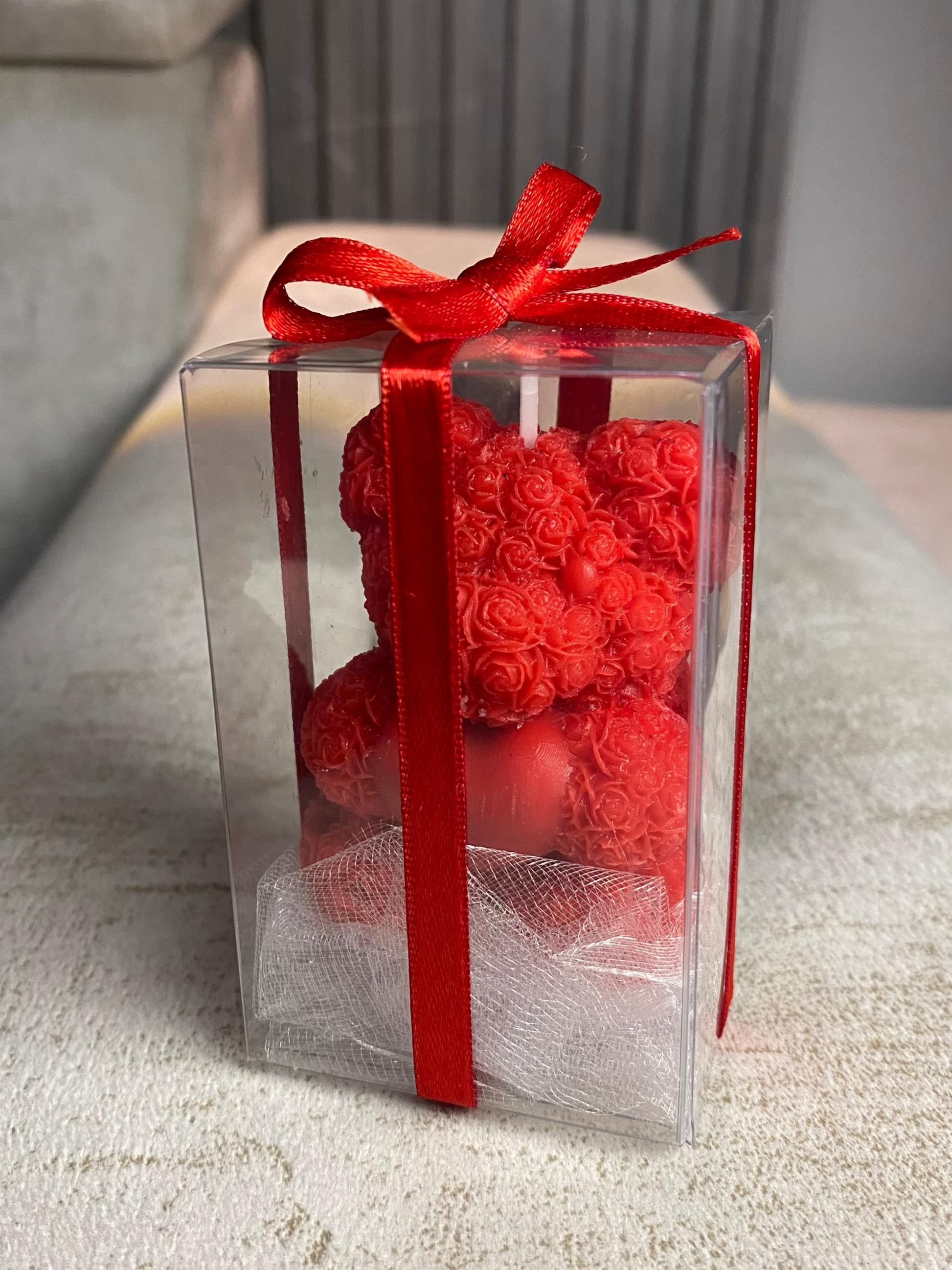 Presentada en un elegante caja transparente con lazo rojo, esta vela no solo es un objeto decorativo, sino también un regalo perfecto para ocasiones especiales o simplemente como un detalle lleno de cariño.